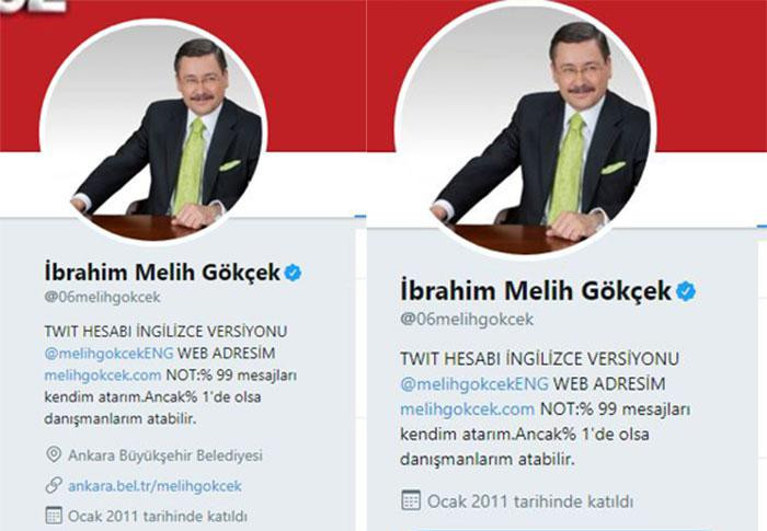 Gökçek’in bilgilerinin konum kısmında Ankara Büyükşehir Belediyesi yer alırken, internet sitesi kısmında da belediyenin sitesindeki özgeçmişinin linki bulunuyordu. Melih Gökçek istifasının ardından mevcut bilgileri bir süre kaldırmamıştı. Gökçek, aktif olarak kullandığı Twitter hesabındaki profil bilgilerinden Ankara Büyükşehir Belediyesi’ni sildi.
