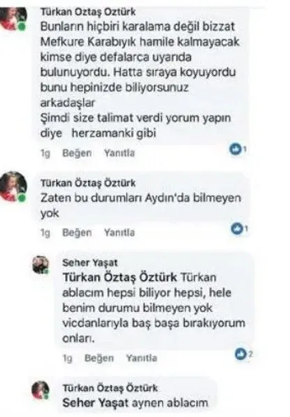 İşten atılan kadınlardan biri de Pilates Eğitmeni Seher Yaşat'tı. Daha önce Aydın merkezden Germencik'e sürülen Yaşat ile Türkan Öztaş Öztürk arasındaki sosyal medya yazışmaları ortaya çıktı: Öztürk: Mefkure Karabıyık hamile kalınmayacak diye defalarca uyarıda bulunuyordu. Şimdi "yorum yapın" diye talimat verdi. Yaşat: Türkan ablacım hepsi biliyor hepsi. Hele benim durumu bilmeyen yok. Vicdanlarıyla baş başa bırakıyorum..
