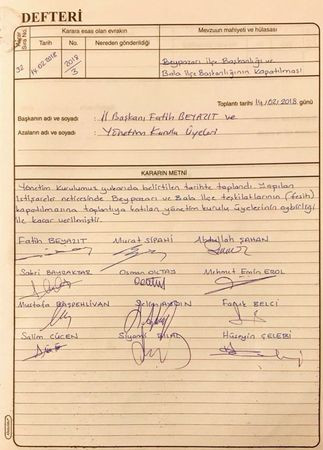 "Saadet Partisi Balâ İlçe Başkanı Hüseyin Erdem kardeşimiz AK Parti saflarına katıldı... Hoş geldin Hüseyin Erdem..." şeklinde paylaşımda bulunan Gökçek'e cevap veren Saadet Partisi Ankara İl Başkanı Fatih Beyazıt, karar defterini de paylaşarak şunları ifade etti: