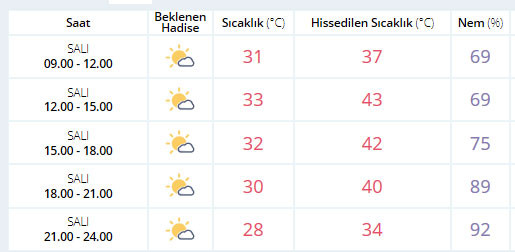 Bunaltıcı sıcaklar akşam da devam edecek. Akşam saat 9’a kadar hissedilen sıcaklıklar 40 derecenin altına inmeyecek.