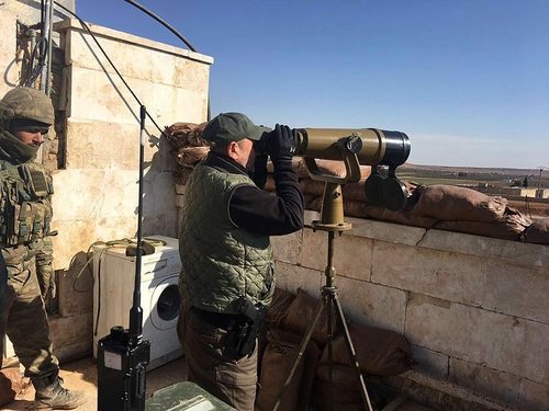 "7-8 doçkalı pick-up ve bir ciple geldiler. Kendine özgü bir raconla hep beraber, bitirimce arabalardan indiler. Hepsi tepeden tırnağa silahlıydı. Dikkatimi çekti, ellerindeki RPG roketatarların emniyet tapası çıkarılmış, roketleriyle tetikleri kurulu, atışa hazır, elleri tetikte. Tam çatışma nizamı yani. Meğer hep böyle gezerlermiş. Başlarında gelen adam da ÖSO'nun lideriymiş. Yani ÖSO iç savaşta galebe çalsa, başa geçecek adam. Kaşları çatık bu silahlı adamların konuşmalarını irtibatçımız bize, bizim dediklerimizi de onlara çeviriyordu. Sürekli içinde "DAEŞ! DAEŞ!" geçen cümleler kuruyorlardı. Köprünün her iki ucundaki kulelere DEAŞ'ın geleceğini, burayı ele geçireceklerini, bizlerin de onları karakoldan, elimizdeki silahlarla ki bunlar zaten ortadaydı. Uçaksavarımız, ttza kobramız, stinger, MK-19 otomatik bomba atarımız) onlara destek sağlamamız gerektiğini söylüyorlardı."
